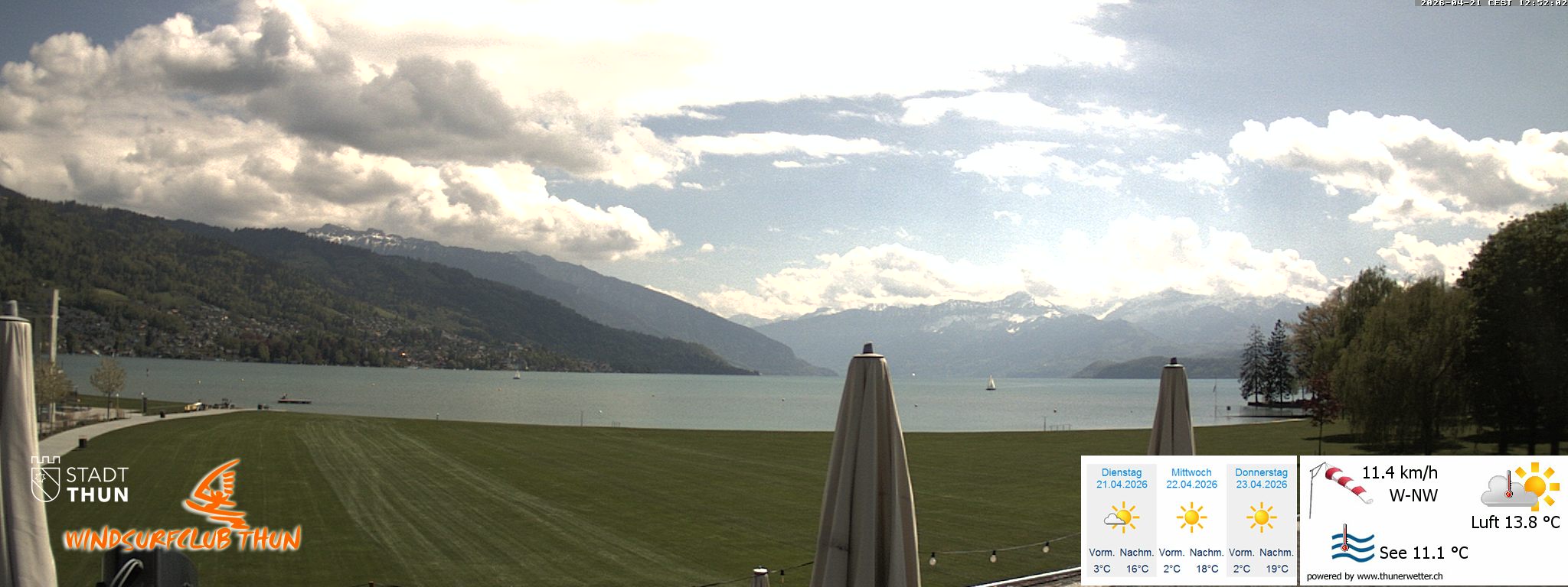 Live WebCam vom Strandbad Thun mit Wetterdaten.
